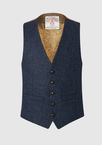 HARRIS TWEED Mens Iain Waistcoat by Bucktrout Tailoring Navy