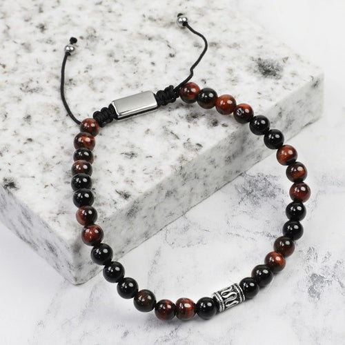 Men's Tiger Eye & Onix Stone Adjustable Bar Bracelet