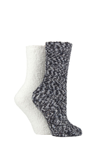 LADIES 2PR Sockshop Multi Cosy Slipper Sock
