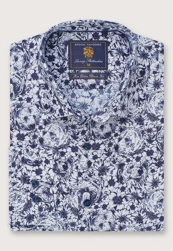 Regular Fit Navy Bird of Paradise Tropical Print Short Sleeve Shirt (4589B)
