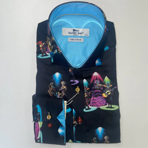CLAUDIO LUGLI SPOTLIGHT SKULL BAND PRINT SHIRT (CP6956)