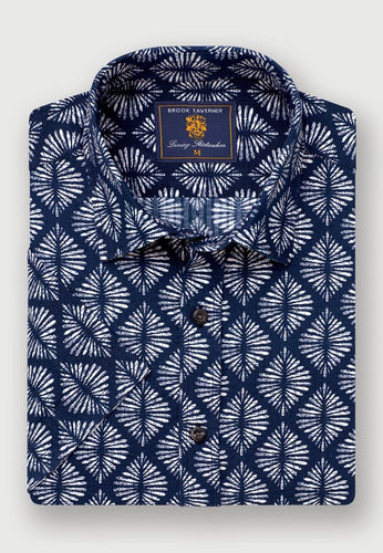 Regular Fit Navy Geometric Print Seersucker Short Sleeve Shirt (4588a)