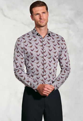 Regular Fit Silver Grey Pheasant Print Cotton Shirt