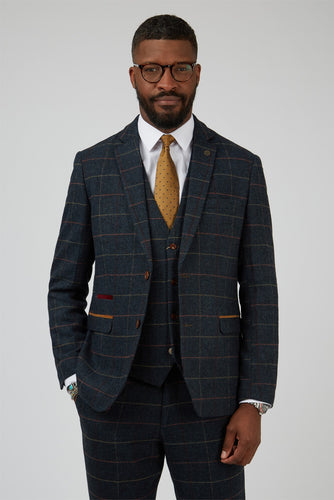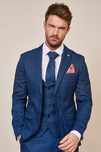 Marc Darcy Chigwell 3pc Blue Tweed Check Suit
