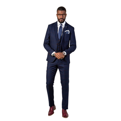 Marc Darcy Edinson Navy with Wine Check 3pc Suit