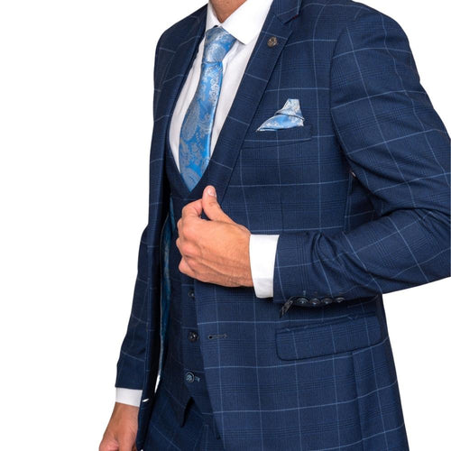 Edisnon Navy with Sky Blue Check 3PC Suit by Marc Darcy