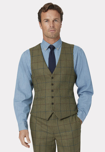 Haincliffe Green with Blue & Merlot Overcheck Tweed Waistcoat