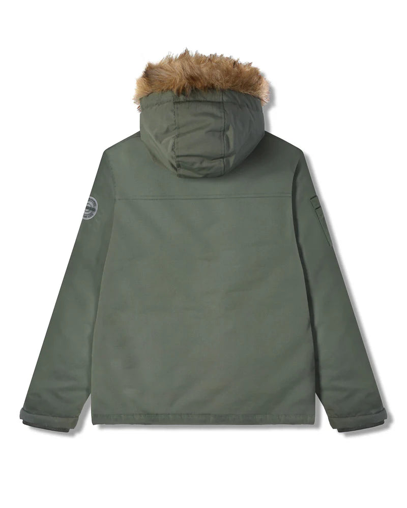 The Utility Parka blends practical design with effortless casual style. Crafted with functionality in mind, it features a soft faux fur trim on the hood for added warmth and comfort. Multiple spacious pockets ensure your essentials are always within reach, while a distinctive sleeve badge lends a subtle touch of character. A versatile and reliable outerwear piece, perfect for everyday wear.