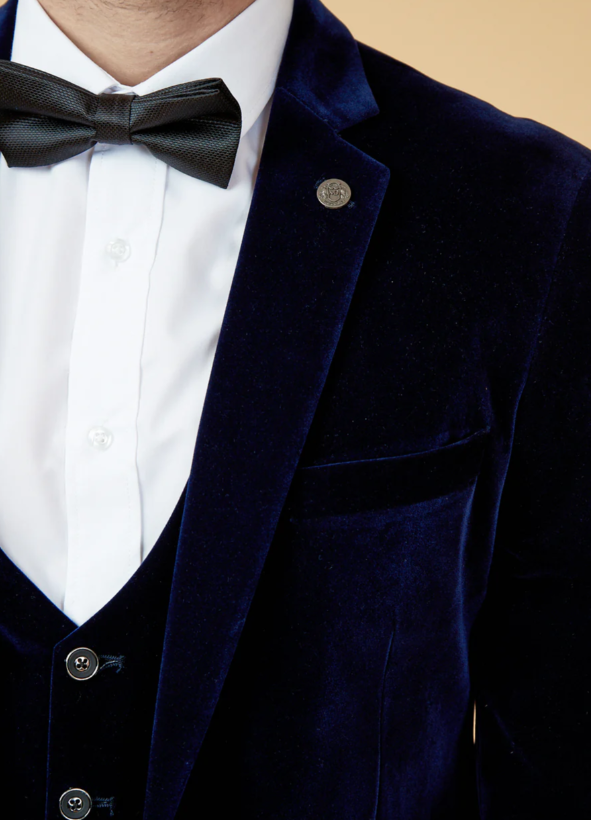This luxe velvet jacket by Marc Darcy is complimented with a matching waistcoat, perfect to wear with black trousers for your Christmas party season!