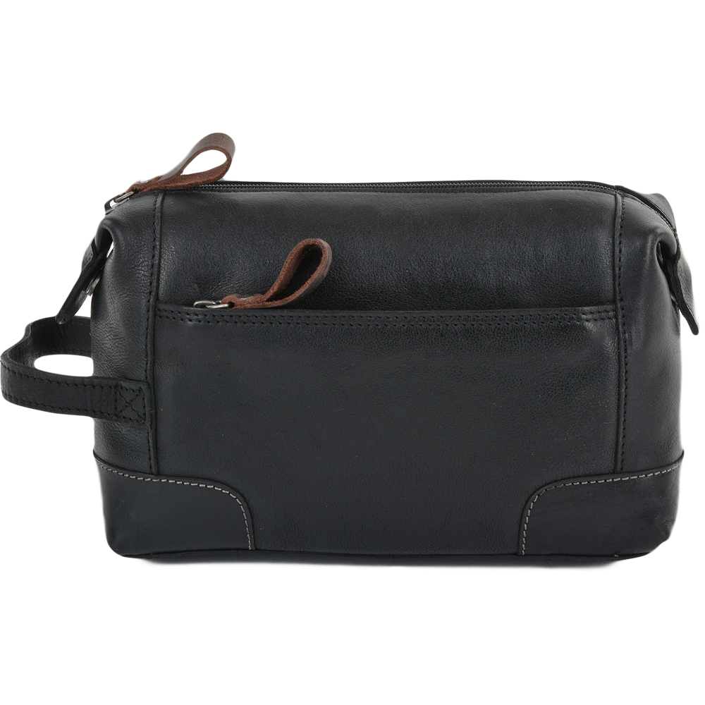 MENS Leather Wash Bag Black/mud : 4557